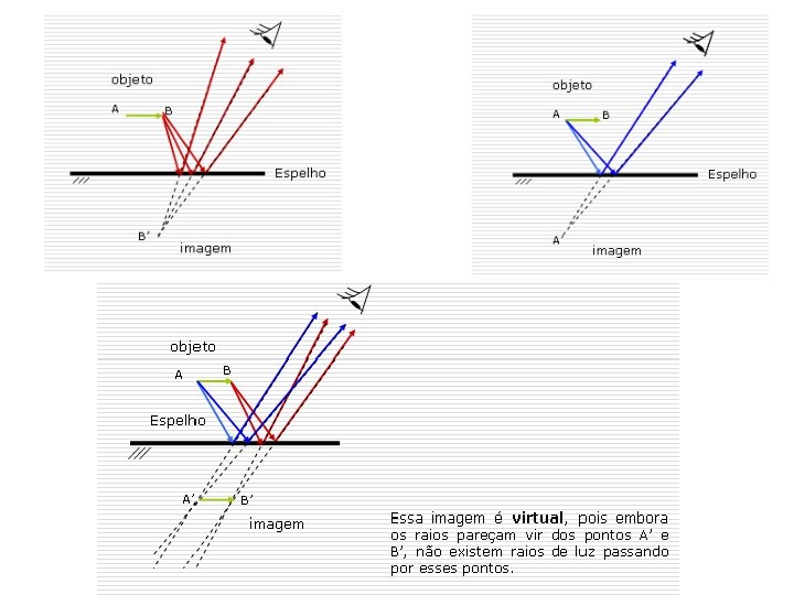 • A imagem pode ser localizada, conforme vimos, aplicando as leis da reflexão. Precisamos de apenas 2 raios luminosos para obtê-la. http: //www. youtube. com/watch? v=rs 7 m. BQp. WQg. M