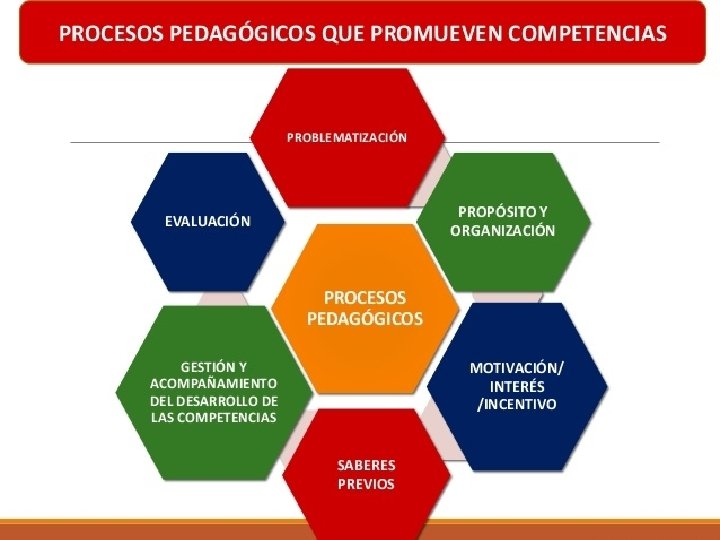 PROCESOS PEDAGÓGICOS MODELO COMPETENCIAS PROBLEMATIZACIÓN PROPÓSITO Y ORGANIZACIÓN MOTIVACIÓN/INTERÉS/ INCENTIVO SABERES PREVIOS GESTIÓN Y ACOMPAÑAMIENTO DEL DESARROLLO DE LAS COMPETENCIAS EVALUACIÓN Se orientan íntegramente al desarrollo de competencias previstas