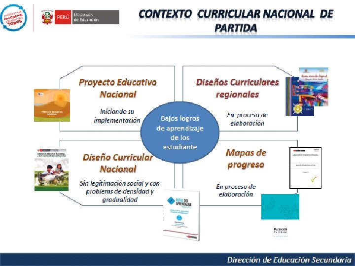 Definición de Desempeños(CNEB) � Son descripciones específicas de lo que hacen los estudiantes respecto a los niveles de desarrollo de las competencias (estándares de aprendizaje). Son observables en una diversidad de situaciones o contextos. No tienen carácter exhaustivo, más bien ilustran algunas actuaciones que los estudiantes demuestran cuando están en proceso de alcanzar el nivel esperado de la competencia o cuando han logrado este nivel. � Los desempeños se presentan en los programas curriculares de los niveles o modalidades, por edades (en el nivel inicial) o grados (en las otras modalidades y niveles de la Educación Básica), para ayudar a los docentes en la planificación y evaluación, reconociendo que dentro de un grupo de estudiantes hay una diversidad de niveles de desempeño, que pueden estar por encima o por debajo del estándar, lo cual le otorga flexibilidad.
