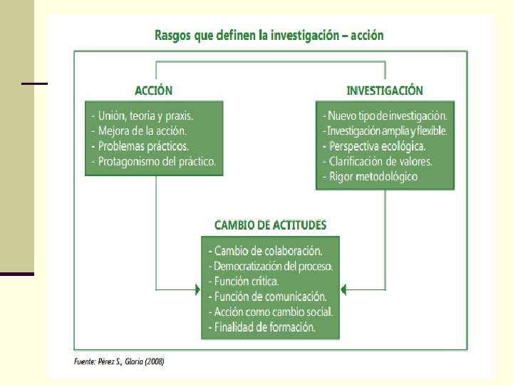 n DONALD A. SCHON ENFATIZA LA IMPORTANCIA DE LOS PROFESIONALES REFLEXIVOS COMO MAESTROS QUE DEFINEN Y REDEFINEN LOS PROBLEMAS. n LA REFLEXIÓN EN LA ACCIÓN Y LA REFLEXIÓN SOBRE LA ACCIÓN SON LOS MECANISMOS QUE UTILIZAN LOS PROFESIONALES REFLEXIVOS PARA PODER DESARROLLARSE DE FORMA CONTINUA Y APRENDER DE SUS PROPIAS EXPERIENCIAS. n MIENTRAS LOS PROFESIONALES CONTINÚAN REFLEXIONANDO EN Y SOBRE LA ACCIÓN Y APRENDIENDO DE LA PRÁCTICA, EL PROCESO DE REFLEXIÓN PASA POR ETAPAS DE APRECIACIÓN, ACCIÓN Y REAPRECIACIÓN. n LOS PROFESIONALES INTERPRETAN Y APRECIAN SUS EXPERIENCIAS A TRAVÉS DE LOS DIFERENTES CONJUNTOS DE VALORES, CONOCIMIENTOS, TEORÍA Y PRACTICAS QUE YA HAN ADQUIRIDO, SCHON LLAMA A ESTOS CONJUNTOS LOS SISTEMAS APRECIATIVOS.