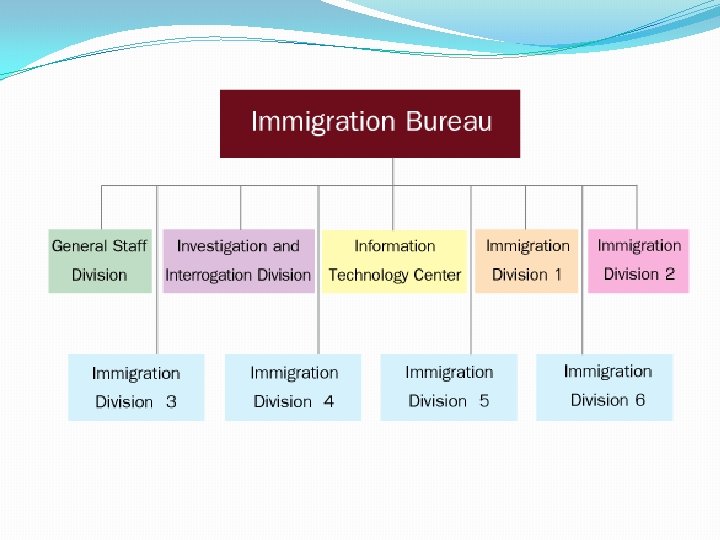 The Immigration Bureau has the following duties and authorities 1. Serves as a strategy intendance for Royal Thai Police to plan, control, examine, recommend and suggest about immigration procedures according to related laws. 2. Performs duties according to Criminal Procedure Law, Immigration Act, Alien Registration Law, Human Trafficking Act and other related criminal laws. 3. Collaborates or supports other related agencies or upon assignment.