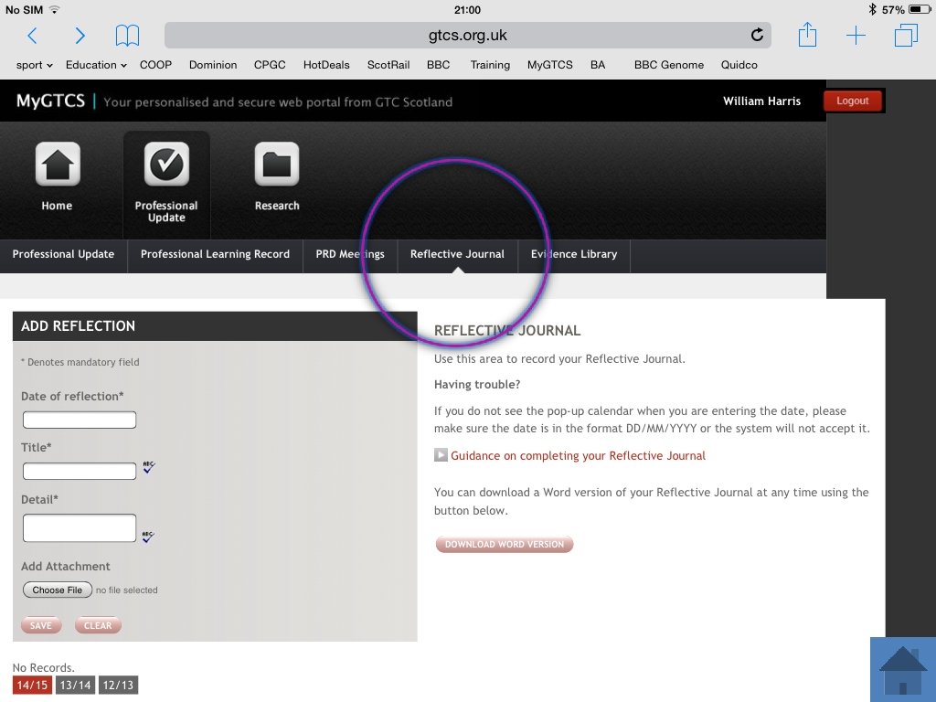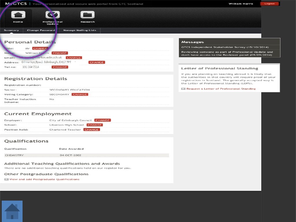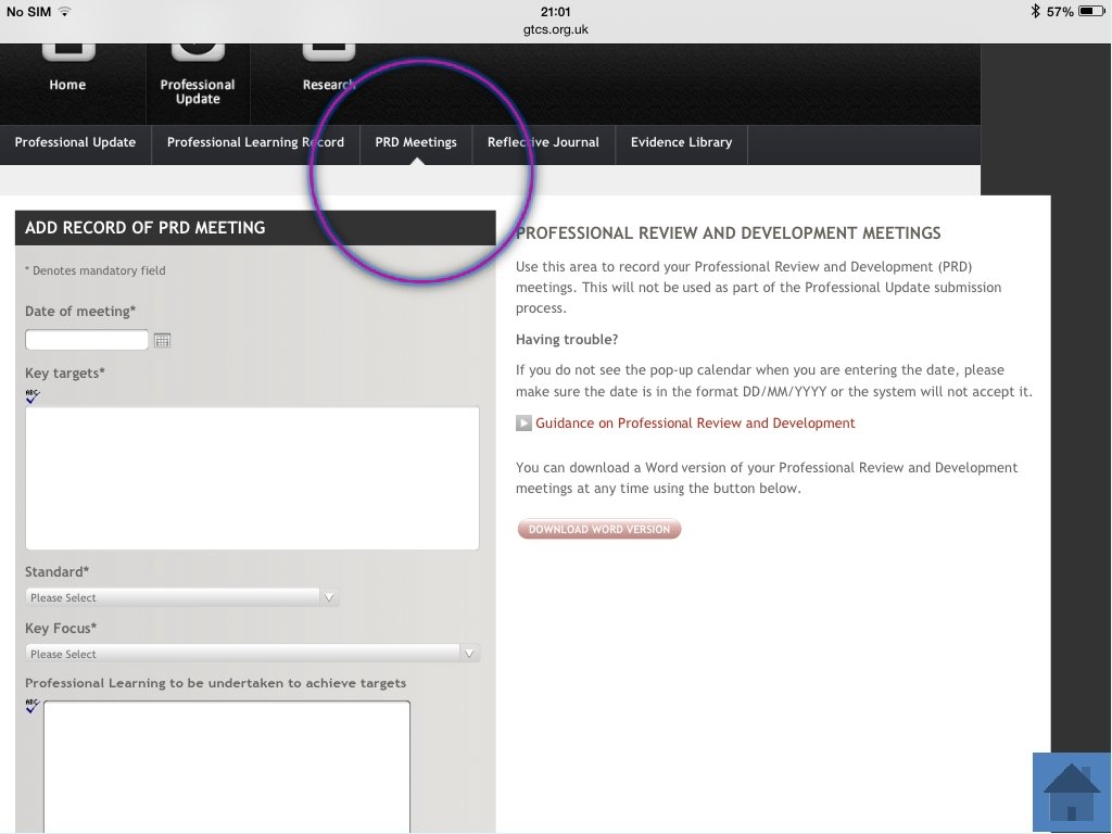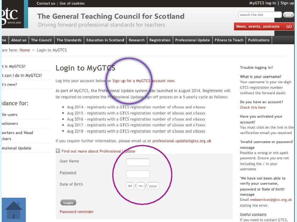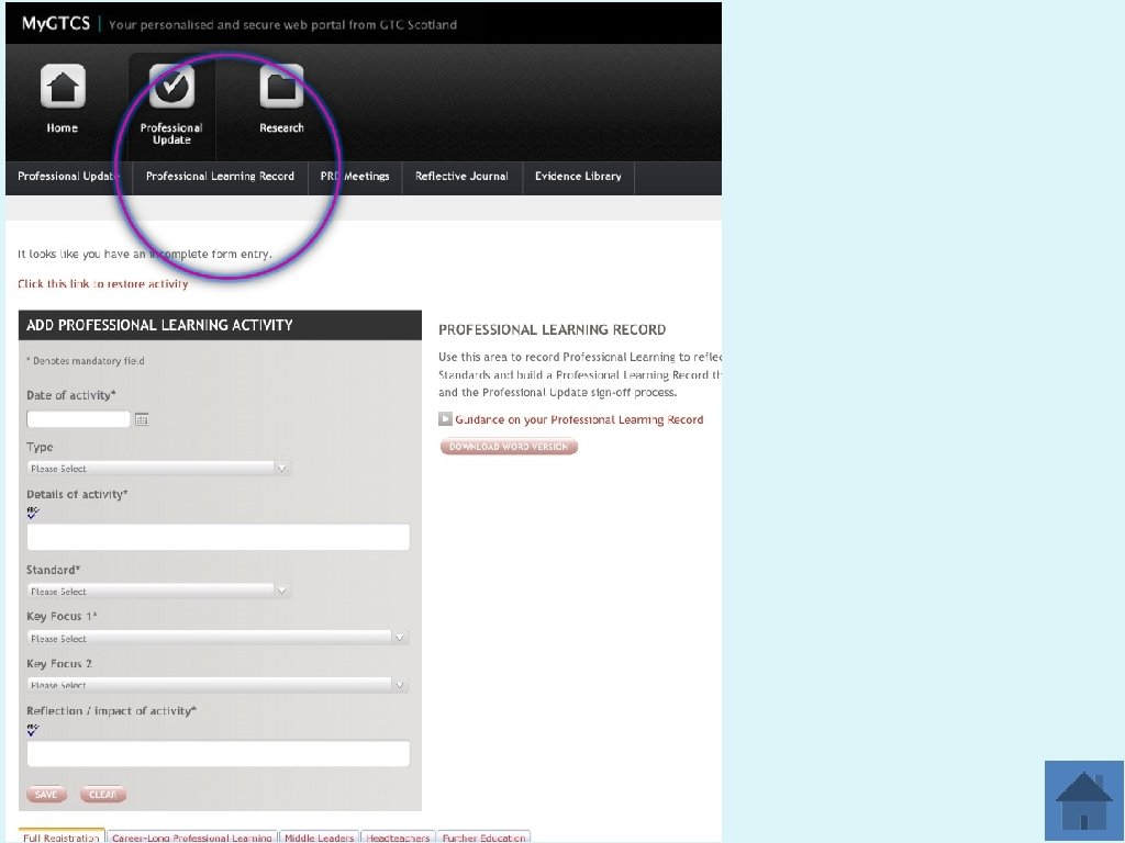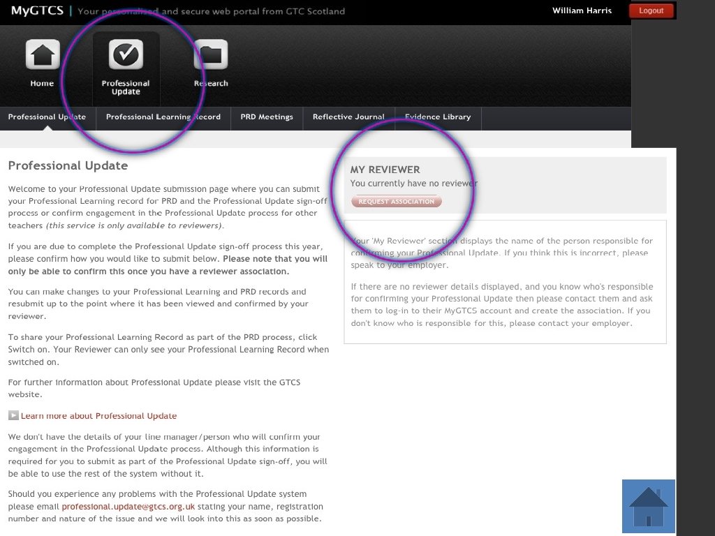 Where you should login to My GTCS. These pages have sections on Professional update homepage Professional learning record Professional Learning Profile - PRD meeting Reflective journal Evidence library