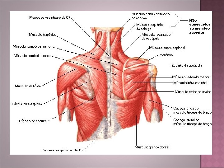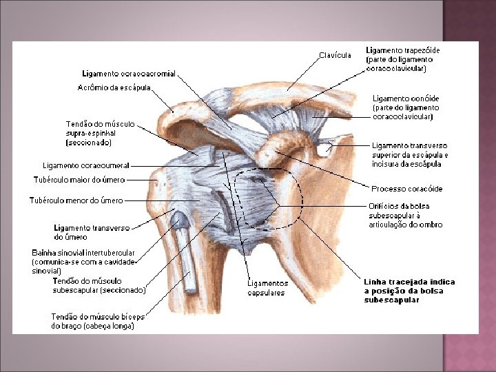 Região que compreende as cinturas e os membros. Cintura Escapular Essa região refere – se a junção entre os membros superiores e o tronco, ou esqueleto apendicular e axial. Constituído pela escápula e pela clavícula, a primeira encontra – se a parte dorsal do tórax, envolta por musculatura que impede o contato direto com o gradil costal, enquanto que a clavícula se encontra na parte ventral do tórax, superior ao gradil costal.