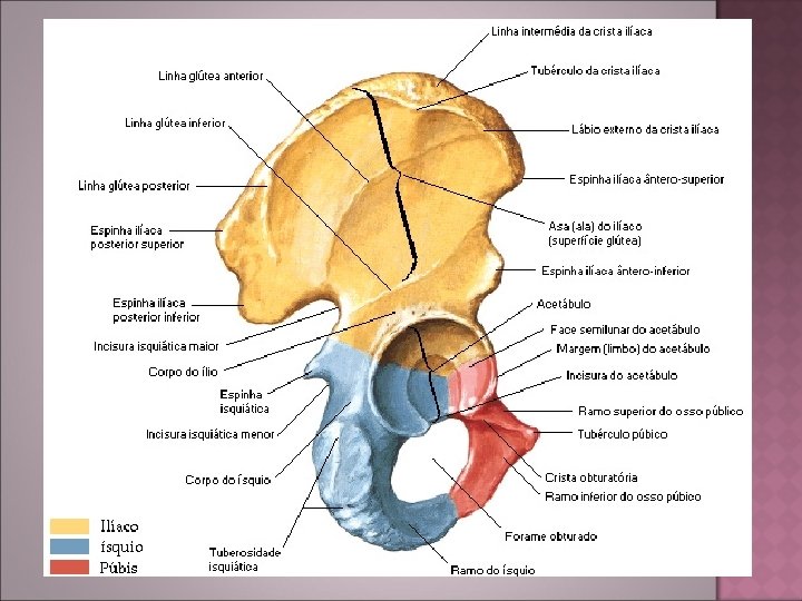 Cabeça = 22 Crânio = 08 Face = 14 Ossículos do ouvido = 3+3 Osso hióide = 1 Coluna vertebral = 26 Cervical = 7 Torácica = 12 Lombar = 5 Sacro = 1 Cóccix = 1 Tórax = 25 Costelas = 12+12 Osso esterno = 1 Cíngulo superior ou Cintura escapular = 4 Escápula = 2 Clavícula = 2 Cíngulo inferior ou Cintura pelve Osso íleo = 1+1 Membros superiores = 60 Braço = 1+1 Antebraço = 2+2 Mão = 27+27 Membros inferiores = 60 Coxa = 1+1 Perna = 2+2 Pé = 26+26 Osso patela = 1+1