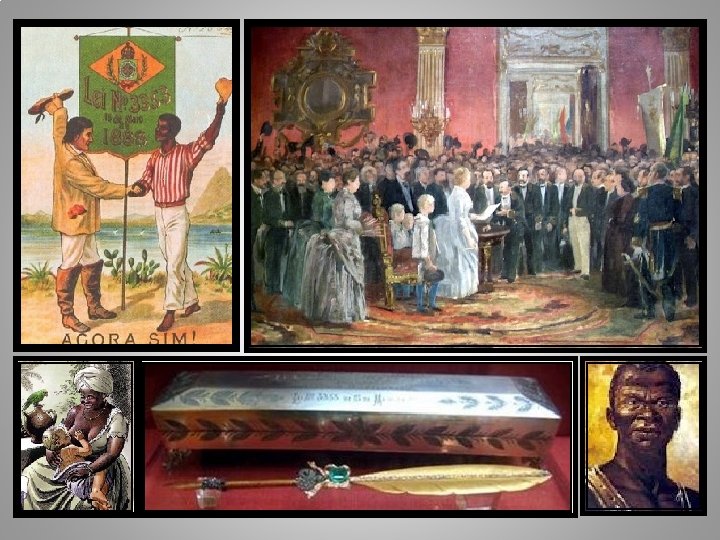 O fim da escravidão não acarretou a falência do Brasil como previa. . . os setores escravistas mas, contribuiu no desgaste político de D. Pedro II. Antigos aliados engrossam a oposição fortalecendo o movimento republicano e a ascensão da elite cafeeira da região do Oeste Paulista. 1. Lei Eusébio de Queirós (1850). 2. Lei do Ventre Livre (1871). 3. Lei Saraiva Cotegipe ou Lei dos Sexagenários (1885). 4. Lei Áurea (1888).