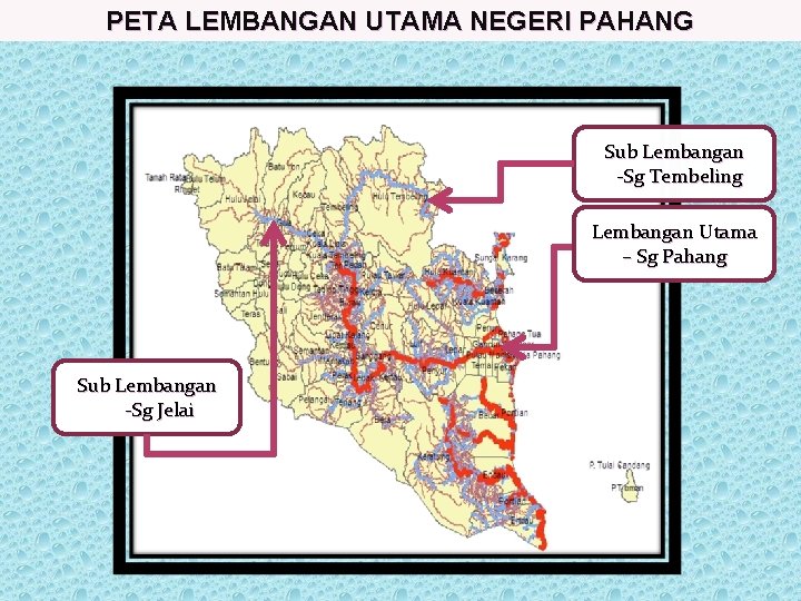 PETA LEMBANGAN UTAMA NEGERI PAHANG Sub Lembangan -Sg Tembeling Lembangan Utama – Sg Pahang Sub Lembangan -Sg Jelai