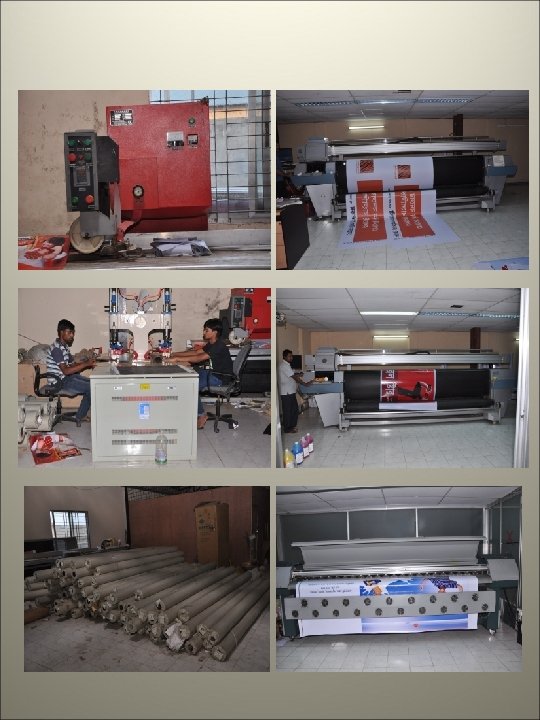 Encad Nova jet 750 Digital Inkjet Printer Origin: Made in America Weigh: 5 Feet Production capacity: a) Front lit media: 60 -70 Sft per hour 1000 -I (Thousand-I) Digital Inkjet Printer Origin: Made in America Weigh: 5 Feet Production capacity: a) Front lit media: 100 -110 Sft per hour Seaming Machine for bill board seaming Cutting Plotter Lamination Machine We are also going to include Laser Cutting, Engraving Machine & Flat bet Printer (any kind of plastic wood, PVC board, glass on direct digital print, maximum size-8’x 4’) for Dhaka Office to provide better client service.