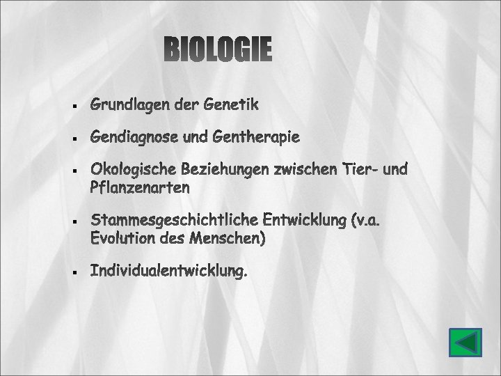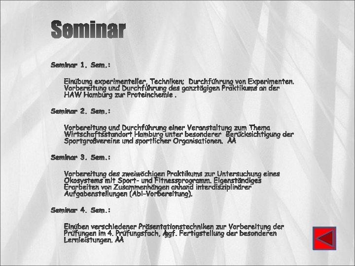 Profilfach: BIOLOGIE Begleitfächer PGW Sport Seminar