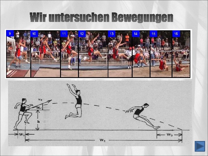 Zu untersuchen sind jeweils die Zuordnungen vorgegebenen Bildnummern mit den morphologischen Begriffen: (1) abspringen (2)landen (3)anlaufen (4)steigen (5)floppen (Brückenposition einnehmen und wieder auflösen) unterlaufen
