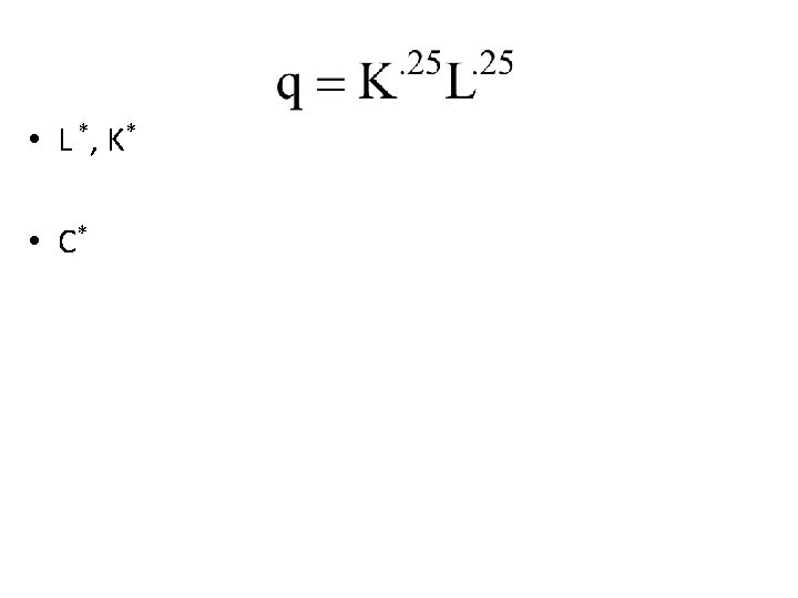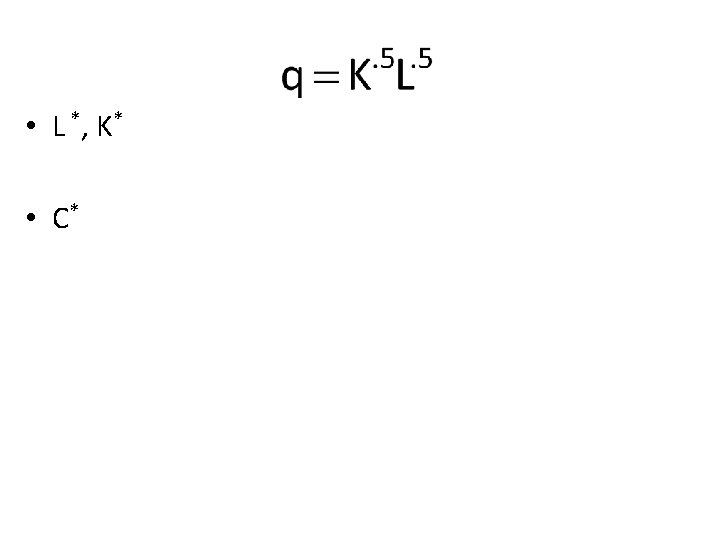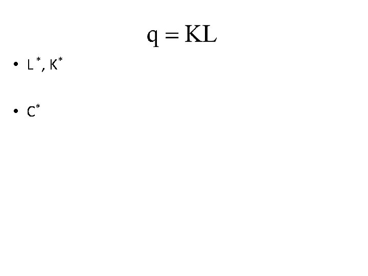 Price Taker in the Long Run • Simple, just MR = MC • Maximize profit w. r. t. q • Maximize profit w. r. t. K, L