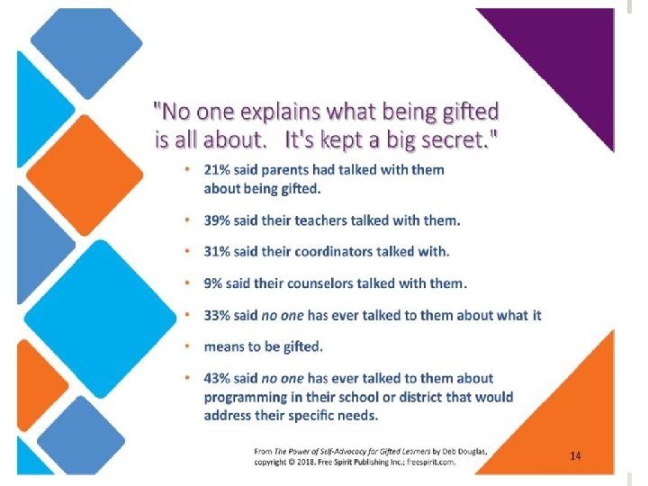I wish someone had told me. . . In surveys of gifted adults. . Many wish they had been better informed about their giftedness as a child. “Why are my inner experiences and perceptions so different from the “norm? ” “Why do I have such heightened sensitivity and emotion? ” CCS is working to change this!