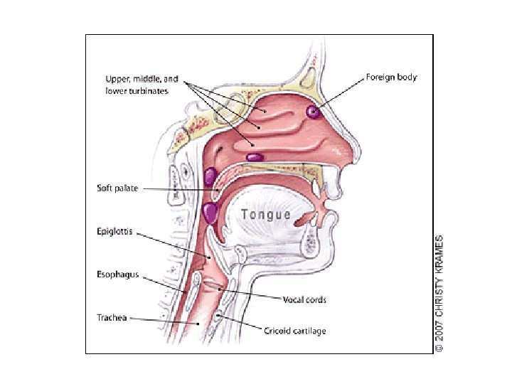 ORGAN – ORGAN PADA SISTIM SALURAN PERNAFASAN: • • Saluran lubang hidung ( Nares anterior ) Rongga Hidung ( vestibulum ) pangkal tenggorok (Laring) Tenggorok (Faring) – Nasofaring – Orofaring – Laringofaring • Batang tenggorok (Trakhea) • Bronkhus ( cabang batang tenggorok ) • Paru – paru ( pulmonum )