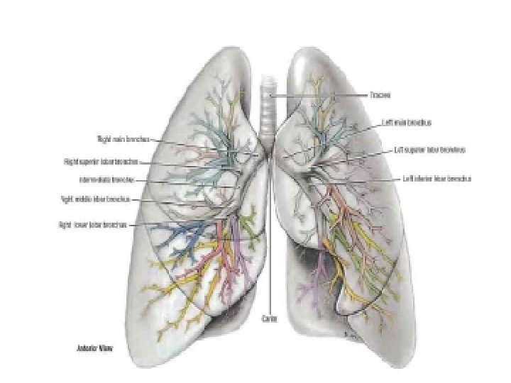 Segmen paru – paru • Segmen paru – paru kanan : • Lobus superior – Segmen apical – Segmen superior – Segmen anterior • Lobus medius – Segmen lateral – Segmen medial • Lobus inferior – Segmen superior – Segmen mediobasal – Segmen antero basal – Segmen Laterobasal – Segmen posterobasal • Segmen paru – paru kiri : • Lobus Superior – Segmen Apiko posterior – Segmen anterior – Segmen superior – Segmen Inferior • Lobus Inferior – Segmen Superior – Segmen Ateriomediobasal – Segmen Lateralbasal – Segmen laterobasal