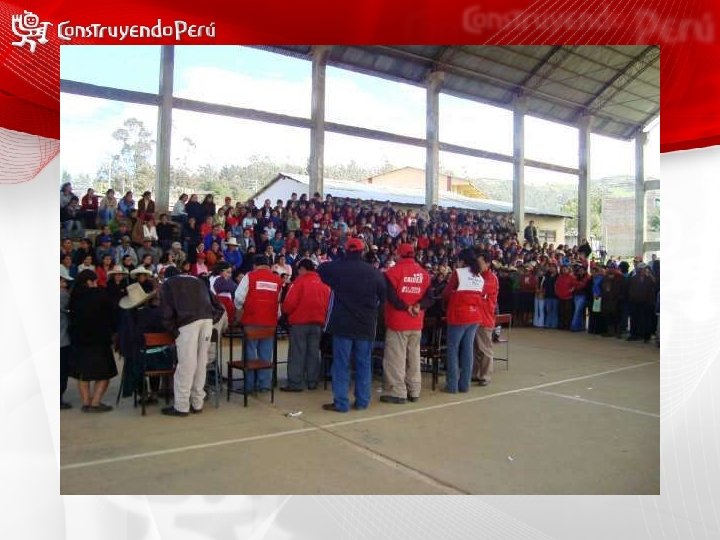 Alianzas Estratégicas Las alianzas público privado a nivel nacional, regional, local permiten mejorar y dinamizar la ejecución presupuestal y fortalecer el proceso de descentralización económica: Convenio Cementos Lima - Mayo 2008. Donación de 5000 bolsas de cemento para el proyecto de Recuperación Turística del Cerro San Cristóbal. Convenio Ministerio de Defensa (VRAE) - Diciembre 2008 Financiamiento de 13 proyectos con municipalidades distritales en zona del VRAE por un costo de S/. 3, 204, 955 nuevos soles. Aporte del Programa S/. 999, 688. 00. nuevos soles.