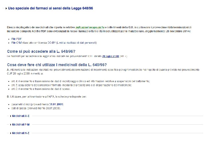 Legge 648/96 Una delle modalità per poter utilizzare un medicinale per un’indicazione non autorizzata (a carico del Servizio Sanitario Nazionale) è quella prevista dalla Legge 23/12/96 n. 648 (Misure per il contenimento della spesa farmaceutica e la rideterminazione del tetto di spesa per l’anno 1996) di conversione del decreto-legge 21/10/96 n. 536 (G. U. n. 300 del 23 dicembre 1996).