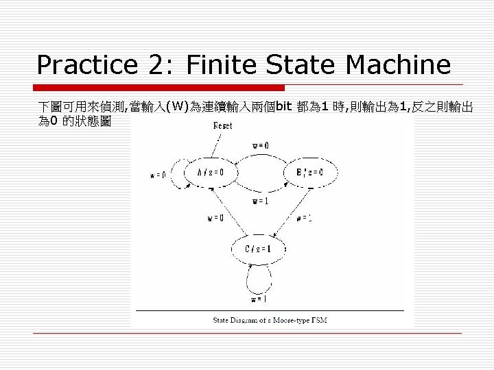 Practice 2: Finite State Machine 以下是實現這個 FSM 的 VHDL code