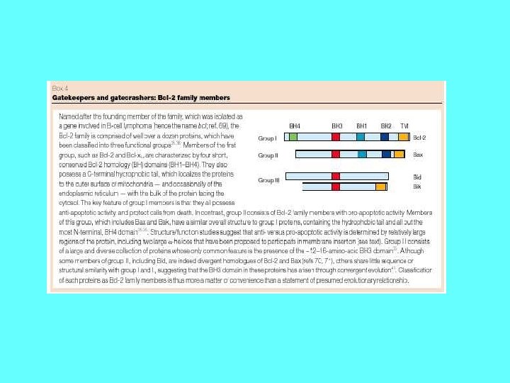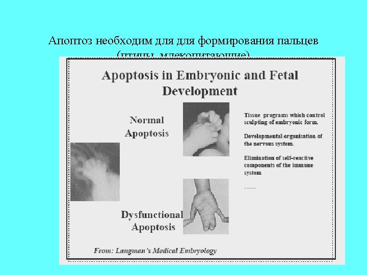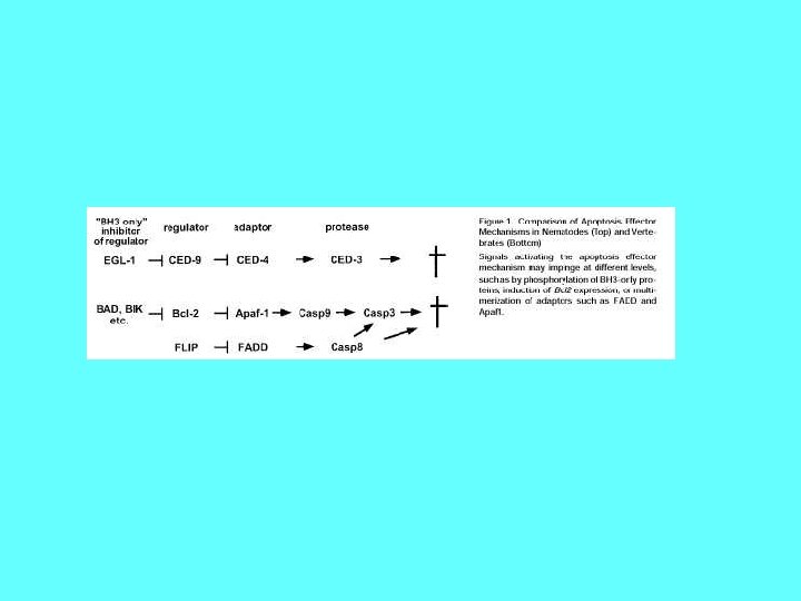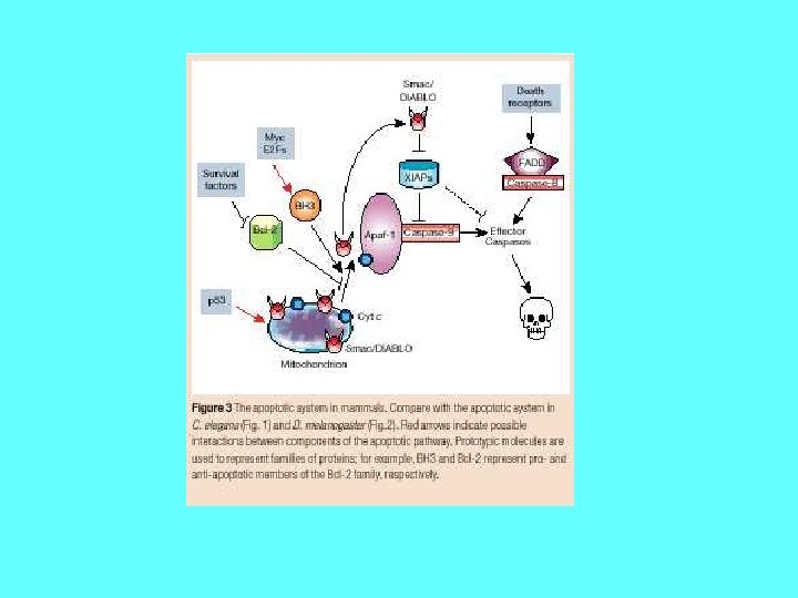 Importance of Apoptosis 1) Crucial for embryonic development -Errors in Apoptosis can lead to Birth Defects 2) Important for maintaining homeostasis - Cell death is balanced with mitosis to regulate total cell number. 3) Improper regulation contributes to human disease - Neurodegenerative diseases - Parkinson’s - Alzheimer’s - Spinal Muscular Atrophy Too much apoptosis -Cancer -Autoimmune diseases (diabetes type I) Not enough apoptosis