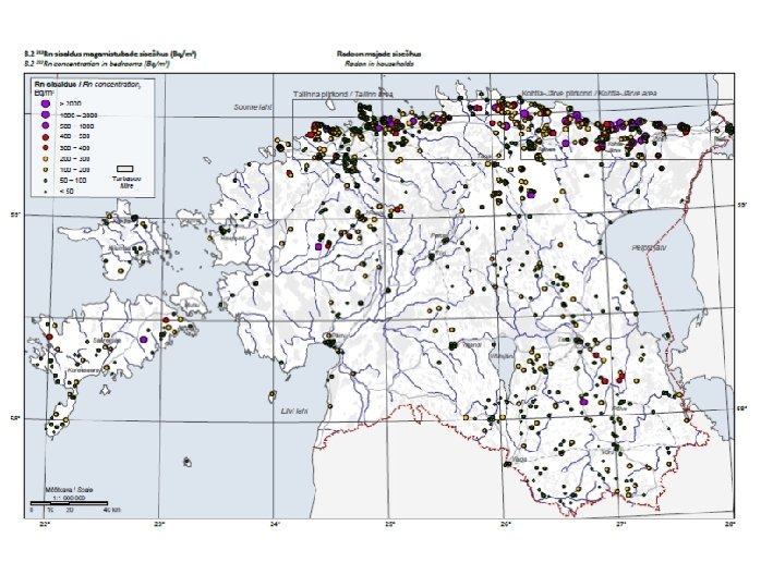 Measurements and studies done since 2004 • Until now about 3500 buildings measured. • 2016 -2017 a Project to create Estonian Radon Atlas. Still not finalized. Based on all data obtained up to now. Contains not only Radon maps, but also maps of natural radiation. Preview of some maps, not to be published yet: