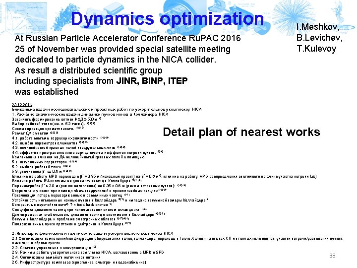 Progress towards realization of the Nuclotron-NICA project A. Sidorin, on behalf of the team PP PAC, JINR, Dubna, 16 January 2017 1