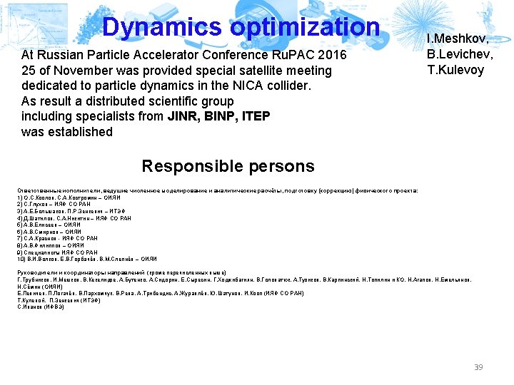 Progress in the NICA collider design • R&D for stochastic cooling • NICA synchronization system (Test at BM@N) • Dynamics optimization 29