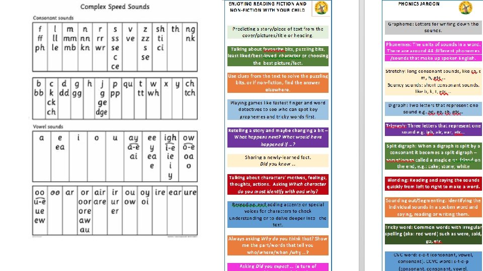 alien/monster words PHONICS JARGON What do these terms actually mean? tricky words phoneme segmenting/sounding out digraph consonant cluster grapheme blending trigraph