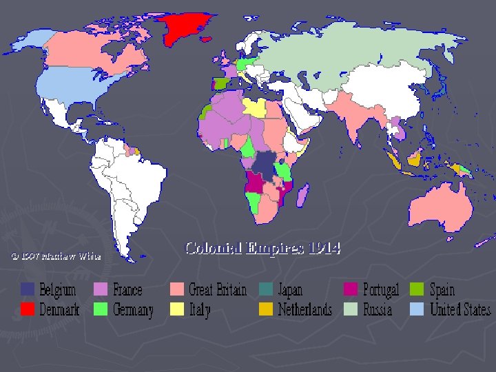 Imperialism ► (Def. ) the economic and political domination of a strong nation over weaker nations. § Protectorate – territory in which an imperial power (Great Britain) allowed the local ruler (of India) to stay in control in return for ensuring support for the imperial power’s policies. § A puppet government. § Often includes an element of racism. ► Imperialism of WWI was a major reason for the outbreak
