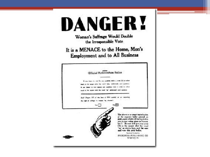 State Level Progressive Reforms • Initiative ▫ Designated number of voters petition to have a measure put on the ballot to be voted on by the electorate. ▫ Many States adopted by 1920.