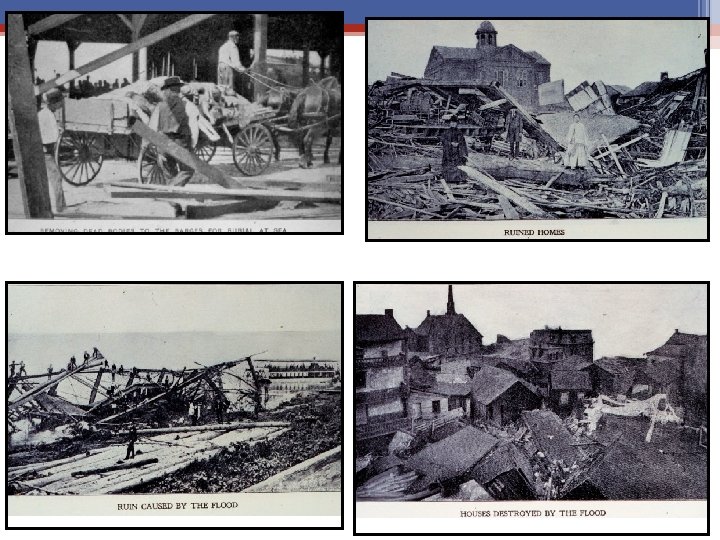 GALVESTON TEXAS: REFORM COMES FROM DISASTER In September 1900 a hurricane slammed into Galveston almost head on. Waves were higher than 15 feet and winds howled at 130 miles per hour. By the time the storm passed, more than 8, 000 people were dead, countless were injured and half of the island's homes had been swept away.