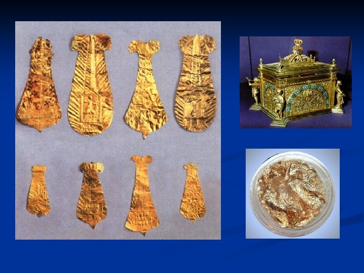 Aurul n Se crede ca aurul a fost descoperit inaintea cuprului. Cules sub forma unor bucati stralucitoare din nisipurile raurilor si depunerile aluvionare , a fost intotdeauna un metal de ornament , apreciat pentru luciul sau galben , dar mai ales pentru stabilitatea sa fata de agentii corozivi. Usor de prelucrat prin ciocanire el lua forma diverselor obiecte de podoaba sau de cult cunoscute in antichitate