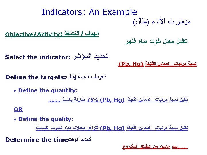 Objectives Tree ﺍﻷﻬﺪﺍﻑ ﺷﺠﺮﺓ Overall objective ﺍﻟﻌﺎﻡ ﺍﻟﻬﺪﻑ Specific objective ﺍﻟﻤﺤﺪﺩ ﺍﻟﻬﺪﻑ Results/Outputs ﺍﻟﻨﺘﺎﺋﺞ Activities ﺍﻷﻨﺸﻄﺔ