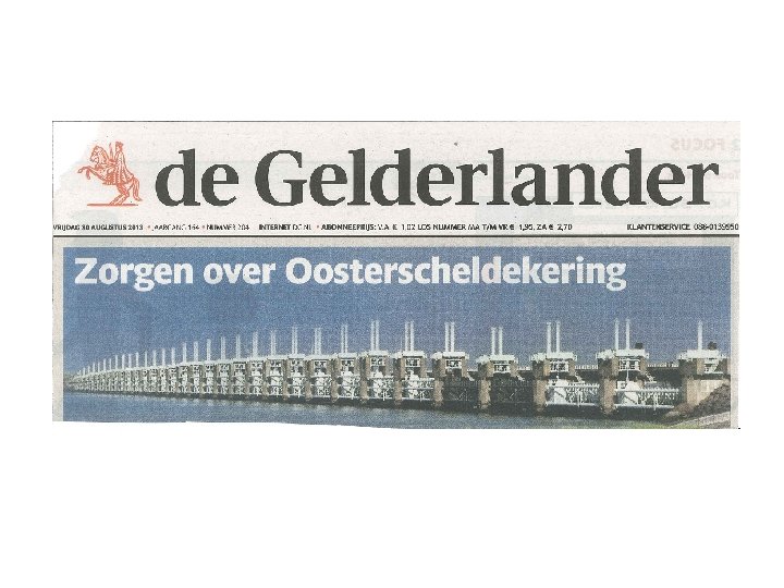 http: //www. omroepzeeland. nl/nieuws/2013 -08 -29/511453/ingenieursslaan-alarm-over-oosterscheldekering#. U-Oecvl_uj. U • • • Taludhellingen geen onderhoudsbestorting sinds 2000 Vloeien, al drie maal Onderuitgaan Geen slaperdijk Zorgen over afkalven waterbouwkundige kennis RWS