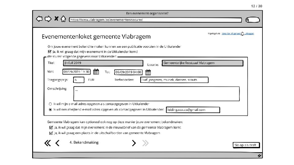 Resultaten (5) Mock-ups van aanvraag en back-office Sinds vandaag online: www. vera. be/eventmachien en www. toekomstforum. be/slimme-regio-halle-vilvoorde-0