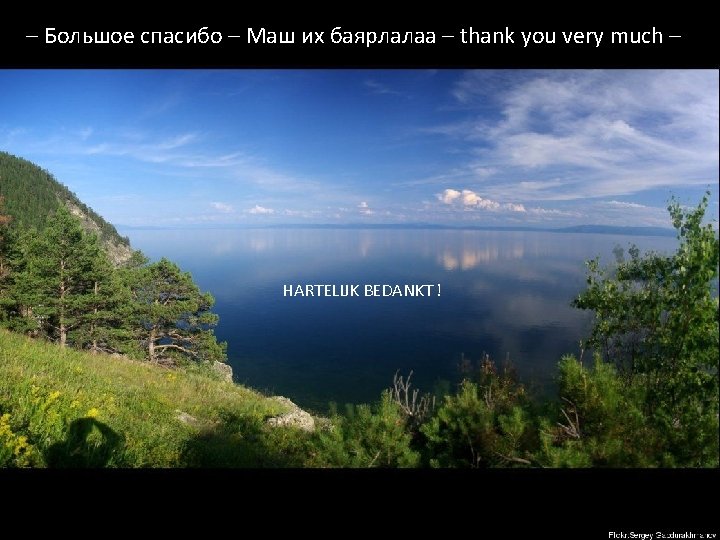 TRANSBOUNDARY DIAGNOSTIC ANALYSIS LAKE BAIKAL BASIN RECOMMENDATIONS IMPROVED FUTURE MONITORING OF PARAMETERS RELEVANT TO PRIORITY PROBLEM AREAS IDENTIFIED IN THE TDA: - SURFACE AND GROUNDWATER QUANTITY AND QUALITY - LAND USE PATTERNS (DEGRADATION HOTSPOTS, FOREST COVER, AGRICULTURAL USE, MINING), USING SATELLITE DATA • • • HARMONISATION OF MONITORING METHODS AND STANDARDS REGULAR EXCHANGE AND DISCUSSION OF MONITORING DATA BETWEEN MONGOLIA AND RUSSIA • PREPARE OVERVIEW OF GROUNDWATER AND SURFACE WATER USE PER SECTOR • PREPARE SUSTAINABLE LANDUSE STRATEGIES (E. G. AGROFORESTRY, REFORESTATION SUSTAINABLE AGRICULTURE, ETC. ) BASED ON LAND DEGRADATION HOTSPOT MAPS