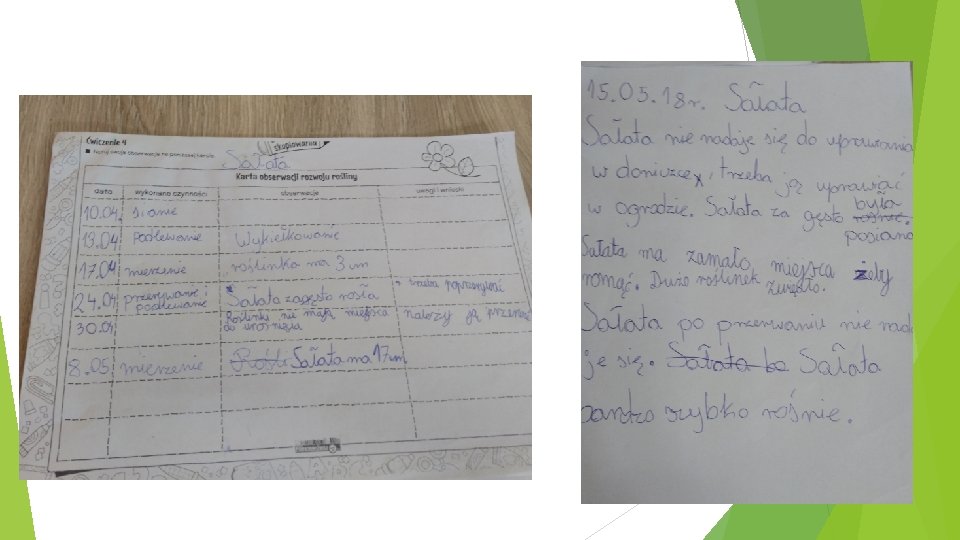 Wnioski z przeprowadzonych obserwacji Cebulka nadaje się do uprawy w doniczce, szybko rośnie, po ścięciu odrasta. Kolendra – bardzo długo kiełkowała, ma intensywny zapach, podobna jest do pietruszki, nadaje się do uprawy w doniczce, po ścięciu odrasta. Bazylia nadaje się do siania w doniczce, po przerwaniu szybko urosła, ponieważ miała wtedy dużo miejsca, ładnie pachnie. Szpinak nie nadaje się do uprawy w doniczce, zostały tylko trzy roślinki ze wszystkich, które wykiełkowały, na ziemi pojawiła się pleśń, chyba było za mokro.