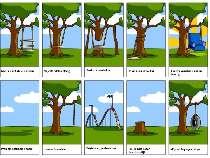 KAZANILMIŞ DEĞER ANALIZI Formüller Değerlendirme İş programı performans indeksi (SPI = EV / PV) Ø > 1 planlanandan daha çok iş bitirilmiştir Ø = 1 planlandığı kadar iş yapılmıştır Ø < 1 planlanan işlerin hepsi henüz bitirilmemiştir. Maliyet performans indeksi (CPI = EV / AC) Ø > 1 işler planlanandan daha az maliyet ile yapılmıştır. Ø = 1 giderler bütçe ile uyumludur. Ø < 1 planlanandan daha çok harcama yapılmıştır. Ek bütçeye ihtiyaç olabilir. Projenin bitişindeki tahmini maliyet (EAC = BAC /CPI) Maliyet performansı aynı şekilde devam ederse projenin olası tamamlama anındaki maliyeti, planlanandan ne kadar fazla ise o derecede problem vardır.