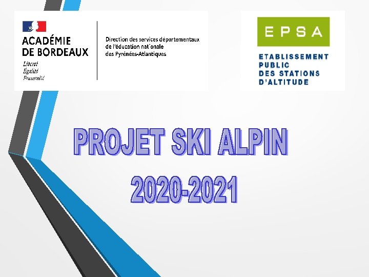 Projet ski scolaire 2020 -2021 980 élèves du département vont découvrir le ski alpin dans les stations de Gourette et La Pierre Saint Martin Pilotage et coordination du projet : l’EDEPS 64 et l’EPSA en partenariat avec : Ø Le Conseil Départemental des Pyrénées-Atlantiques Ø Les Pupilles de l’enseignement public (PEP) Ø La Ligue de l’enseignement 64 Ø L’Union Sportive de l’Enseignement du premier degré (USEP) Ø Le Comité Départemental de Ski et ses associations (Association Sportive Municipale de Pau, Ski Club Nayais, Ski club Jurançonnais, Lescar Ski, Ski Club Basque, Ski club d’Artouste) Ø La ligue contre le cancer
