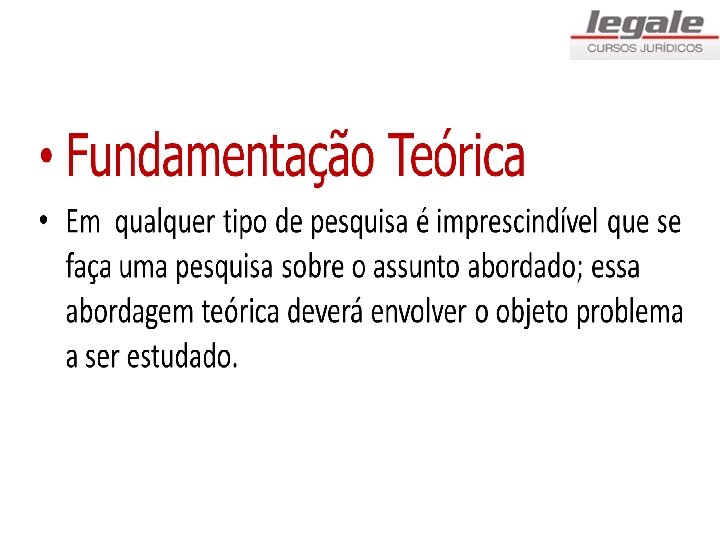 • 5 - OBJETIVOS • Objetivo Geral • Aquilo que se quer alcançar ao término da pesquisa. • Ex: discutir a utilização de provas ilegais para a solução de litígios, traçando-se uma ligação com a busca da verdade real no processo civil, bem como os entendimentos jurisprudenciais e doutrinários a respeito do tema.