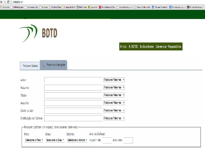 -Biblioteca Digital Brasileira de Teses e Dissertações (BDTD) SITE: http: //bdtd. ibict. br/en/a-bdtd. html Essa base é mantida pelo IBICT, o Instituto Brasileiro de Informação em Ciência e Tecnologia, e pretende ser uma base exaustiva de todas as teses e dissertações produzidas em programas de Mestrado e Doutorado de instituições públicas (e algumas particulares) brasileiras. É obrigação dos alunos que defendem sua tese ou dissertação de disponibilizar o conteúdo completo na base desde 2002. Possui atualmente mais de 150. 000 obras disponíveis para consulta.