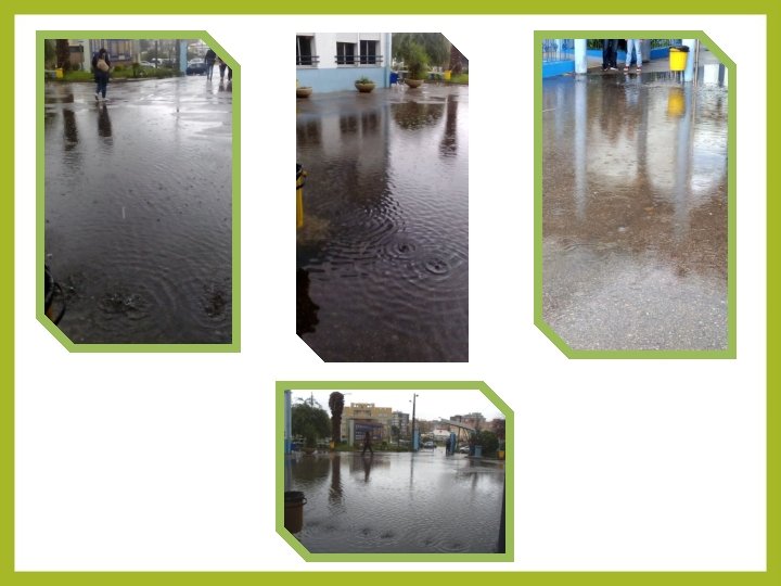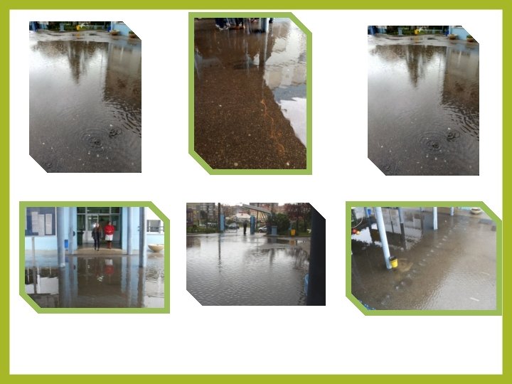 Possíveis soluções: 1. Cortar algumas árvores, sobretudo palmeiras. 2. Necessária manutenção e limpeza com mais frequência com o objetivo de não deixar acumular resíduos para não entupir os sumidouros 3. Aproveitamento das águas pluviais para a rega dos espaços verdes da escola, através da instalação de depósitos, de maneira que água não formaria aquela extensa “mancha” de água e poupar-se-ia água.