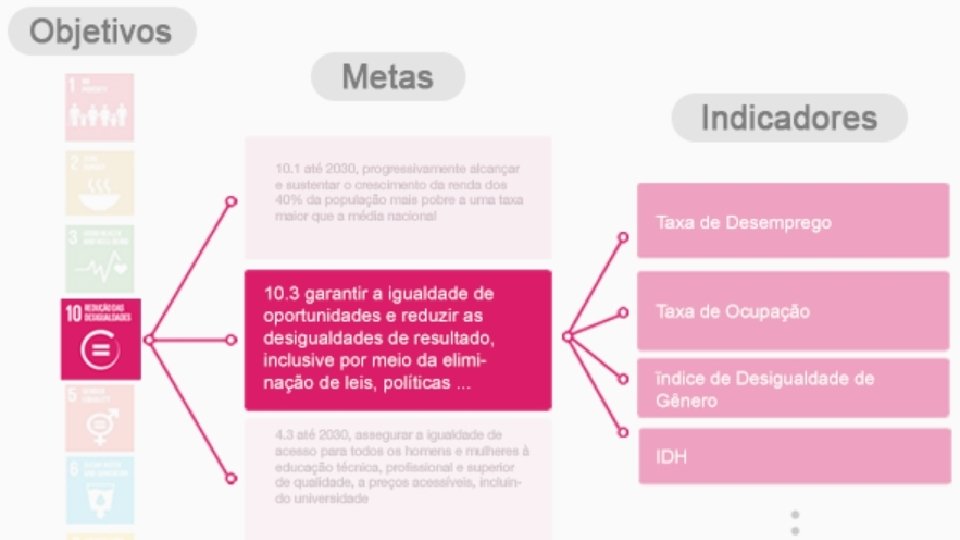 q ODS 3 – Saúde e bem-estar CD = Contribuição Direta CI = Contribuição indireta *Acrescentado pela The Commonwealth q. Metas 3. 4 (CD); 3. 3, 3. 5 e 3. 7 (CI) q ODS 11 – Cidades e comunidades sustentáveis q. Metas 11. 7 (CD); 11. 3 (CI) q ODS 4 – Educação de qualidade q. Metas 4. 4*, 4. 5, 4. 7 (CD); 4. 1 (CI) q ODS 10 – Redução das desigualdades q. Metas 10. 2 (CD); 10. 7 (CI) q ODS 8 – Trabalho decente e crescimento econômico q. Metas 8. 1* e 8. 6 (CD); 8. 2, 8. 3, 8. 4, 8. 5, 8. 7*, e 8. 9* (CI)