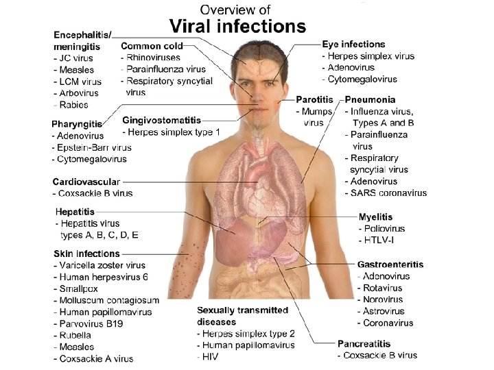 2) Classification based on diseases they cause • Viruses that affect humans are divided into 21 groups based on the differences in their genome and replication methods