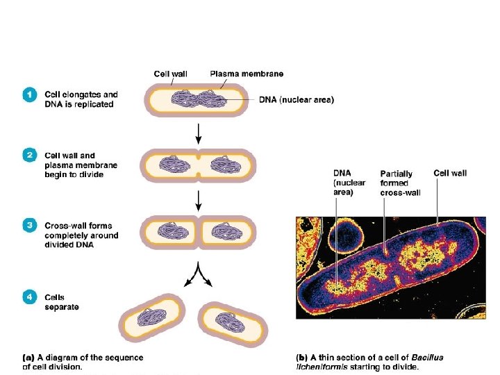 Reproduction of Archaea and Bacteria • Binary fission: -Result: cells with the same genetic material -Process: • Makes copies of its single chromosome • Cell elongates • Builds a partition (septum) – P. 301