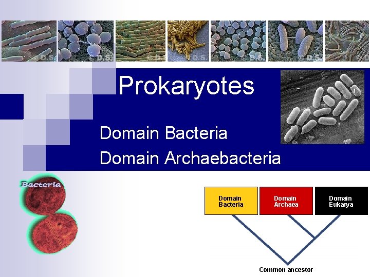 Prokaryotes Domain Bacteria Domain Archaebacteria Domain Bacteria Domain