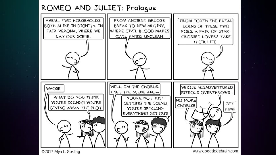 Today’s Goals Focus Questions • Examine the prologue through multi-media and multiple presentations • Analyze and translate RJ Prologue • How do different mediums portray the same information or story, and what is lost or added in each interpretation? • What is happening in the prologue?