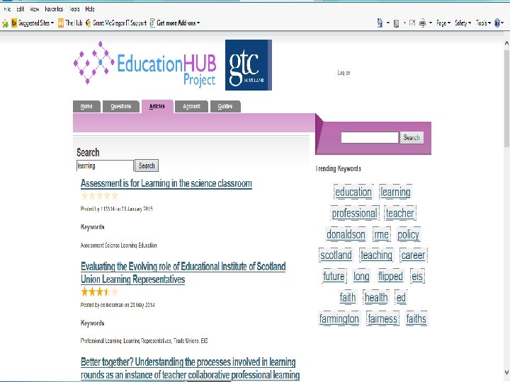 GTCS: Supporting Professional Learning EBSCO – online access to 1700 educational journals + e-books Research Engagement Group – developing and trialling teacher engagement with EBSCO Education Hub