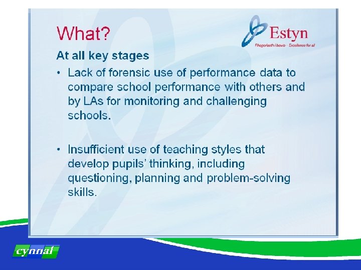1. Background • CBI report 2011 • National and international assessment : PISA/ GCSE results • Estyn inspection evidence