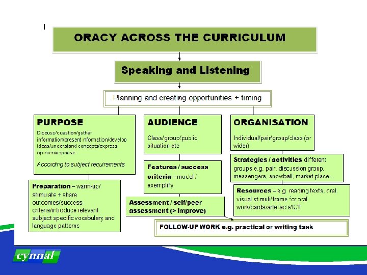 What are all teachers expected to do in their subjects? • • • • Include oracy as a natural part of every lesson Ensure that oracy forms a natural part of developing assessment for learning and of developing thinking and learning skills Create a suitable climate for oral work in class Provide regular opportunities to develop oral work Plan oral work carefully Incorporate various and suitable oral activities into schemes of work and lessons Provide purposeful and relevant stimuli in order to elicit extended oral responses Provide opportunities for learners to work in pairs and groups and promote their ability to do so effectively (see further guidance) Provide appropriate support for individuals and groups – frequent and constructive feedback on how to improve Identify oral success criteria for learning and thinking Ask open questions which will encourage learners to think and respond extendedly Ensure opportunities for learners to reflect in order to assess their own oral skills and those of their peers Provide encouragement and support - model vocabulary and relevant language patterns