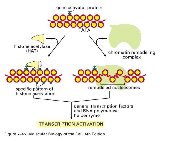 Attivatori: acetilazione degli Istoni • Alcuni attivatori attirano delle acetilasi • Il macchinario di trascrizione puo’ accedere al DNA meno condensato