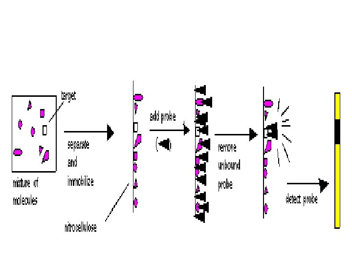 Rivelazione degli ibridi • Esposizione di un film se la sonda e’ marcata radioattivamente • Se la sonda e’ marcata con un enzima si procede alla reazione enzimatica che produce colore direttamente sul supporto solido