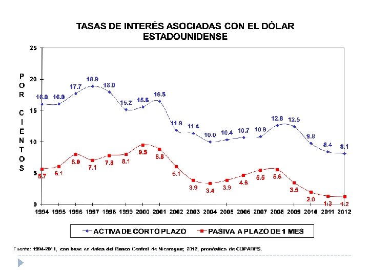 PERFIL DE LA POLÍTICA MONETARIA 2012 � Los objetivos de la política monetaria son alcanzar la meta de reservas internacionales brutas de US$1, 917 millones e igual a 2. 18 veces la base monetaria, y mantener una tasa de devaluación anual de 5% y una tasa de inflación objetivo de 7. 7% anual. � Se espera una colocación neta neutra de títulos valores del BCN (monto de las colocaciones igual al de las redenciones), pero el dinero que circula fuera del sistema fianciero nacional monetaria aumentará en un monto equivalente a US$58 millones debido a las pérdidas del BCN equivalentes a US$60 millones. � Las pérdidas del BCN se explican con una mayor tasa de rendimientos de las Letras que emita (por el cierre temporal de las ventanillas del FMI y del BID) y de un menor rendimiento financiero de los depósitos de sus reservas internacionales en el exterior (por la crisis económica mundial).